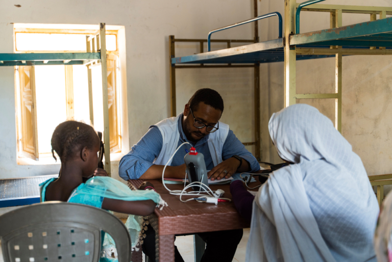Ahmed Omer Aljack, médico de MSF, em atendimento com clínica móvel. Foto: Ala Kheir/MSF