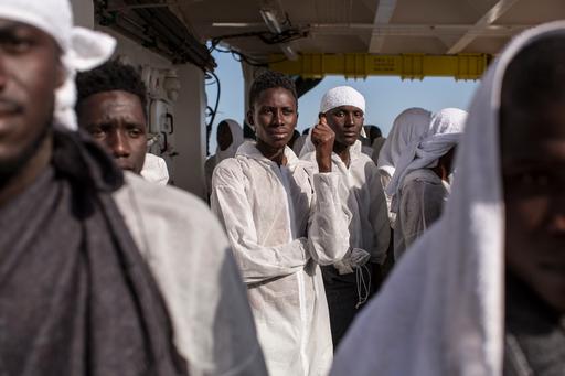 Nós demos a cada pessoa uma pequena bolsa com um lençol, alguns biscoitos ricos em energia, meias e uma toalha para usar em seus primeiros momentos no Aquarius. Um homem veio até mim e me explicou, em francês: “Minha esposa está morta e ainda está no barco. Não sei o que fazer.”